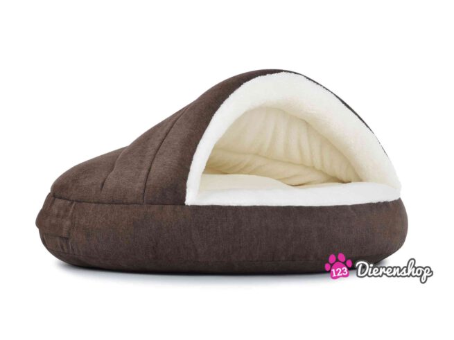 De luxe hondenmand Snuggle Cave Bruin is het ideale plekje voor uw hond om lekker warm een dutje te doen.