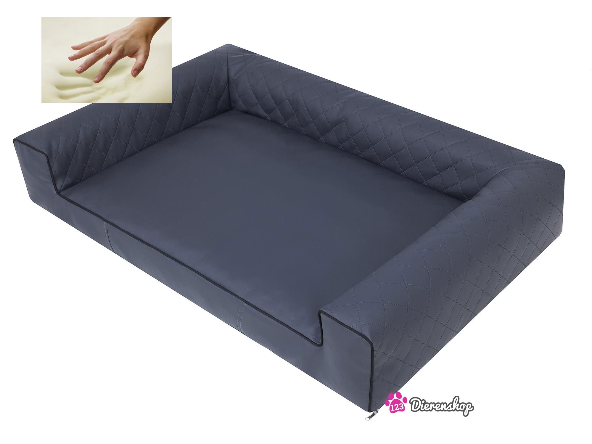 De orthopedische hondenmand Lounge Bed Indira van Dog’s Lifestyle ( by Ralphs Pet Web ) is een zeer hoogwaardige kwaliteit hondenmand voorzien van een sterke wasbare hoes van PU- leer!